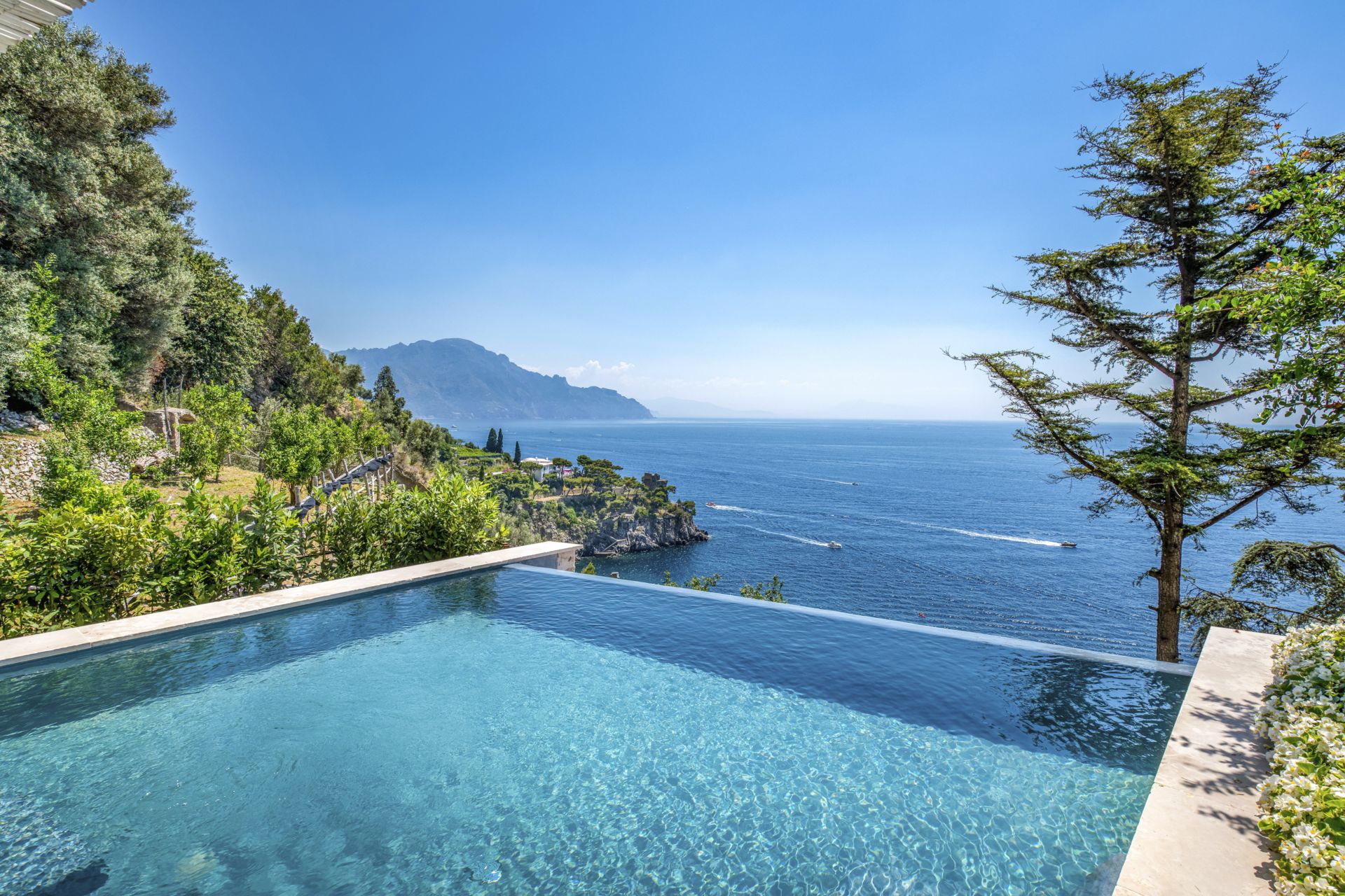 Piscina privata a sfioro riscaldata (fino a 30 gradi), vista panoramica sulla costa