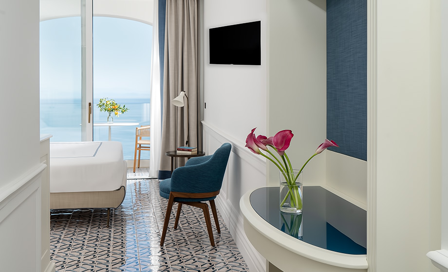 The Classic rooms (Sized up to 25 sqm/ 269sqft) are located on the side of the building overlooking the typical coastal terraced gardens from it floor to ceiling windows.